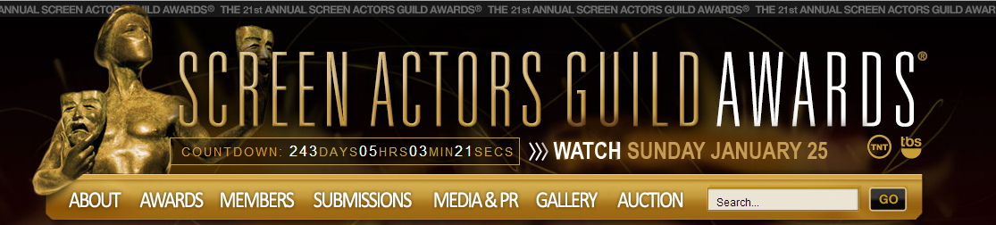 The Mahathir Peace Award honors people’s efforts to promote peace and harmony throughout the world. The header for their website is so effective because it focuses on the idea of peace. This is achieved by a poignant definition of peace coupled with a landscape shot. The photo of the mountains is unexpected considering the focus of the award, but definitely a scene that everyone can find beautiful and peaceful.Another standout feature of this header is its inclusions of a call to action to watch a video. This is memorable because it’s engaging with viewers from the very beginning and is a simple way to learn more about this award. - Screen Actors Guild Awards
