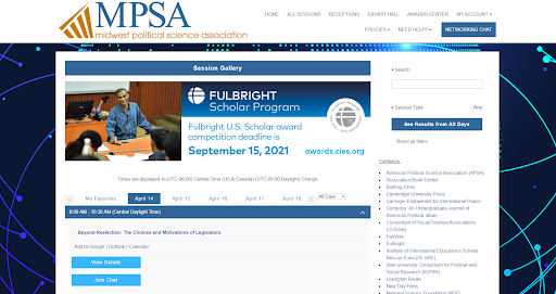 The Midwest Political science Association chose a slightly different option, opting for text links to exhibitor booths on the right side of the schedule for their 78th Annual Conference.
