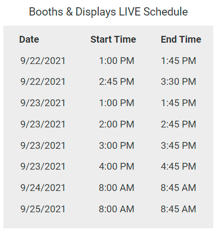 When an exhibitor booth is virtual, a person visiting the booth can’t tell if the exhibitor is anywhere to be seen. Instead, an exhibitor should put a timetable or schedule into their booth description, so attendees know when they can send a message and expect an immediate response.